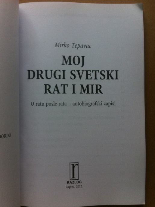 Mirko Tepavac – Moj drugi svetski rat i mir. O ratu posle rata – autobiografski zapisi