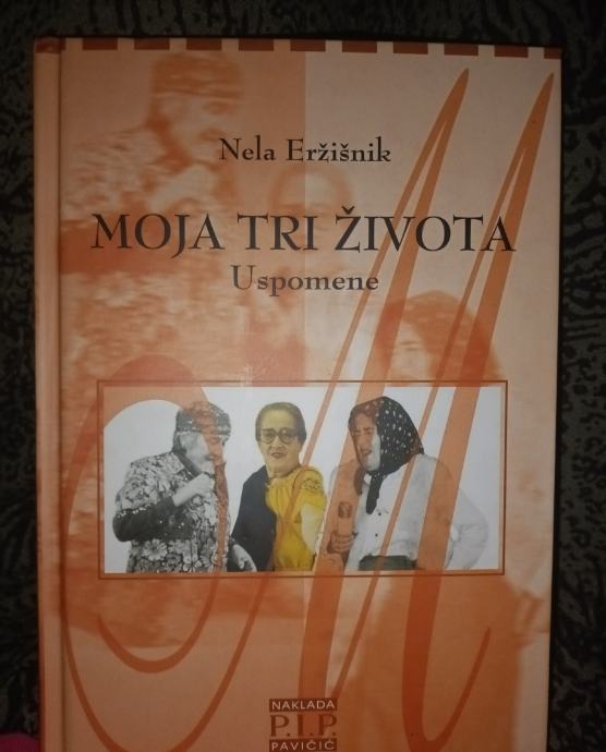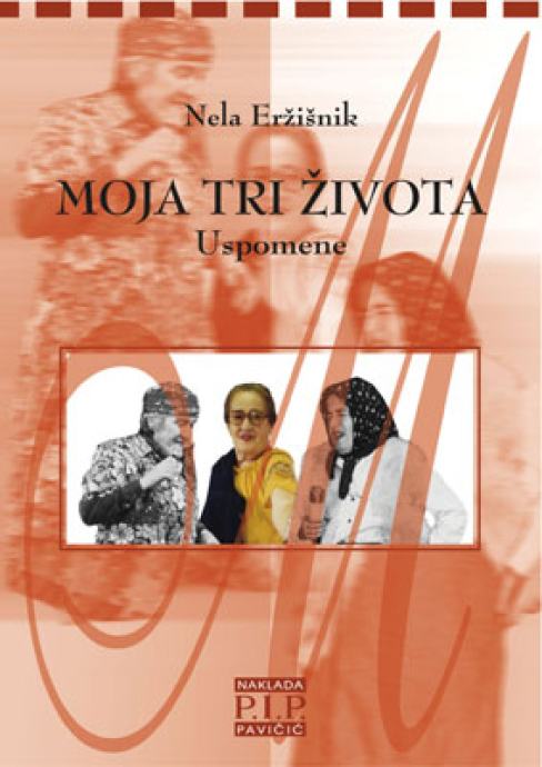 Rođena kao Nevenka Maras, umrla kao Marija Blažević, proslavila se kao Nela Eržišnik. Bila je glumica, zabavljačica i iznimna žena. U ovoj knjizi uspomena progovaraju sve tri o svim trima. Nevenka, Marija i Nela prebiru po doživljajima dramske prvakinje, estradne komičarke i velike zvijezde. U memoarima Moja tri života Nela Eržišnik otkriva izvore svog glumačkog i komičarskog umijeća i pozadinu uzbudljive karijere. Otkrio ju je dr. Branko Gavella, nastupala je s Boženom Kraljevom, Belom Krležom, Ervinom Dragman, školovala se sa Svenom Lastom, Perom Kvrgićem, Dragom Krčom, Josipom Marottijem, Etom Bortolazzi, bila je u družini Vikija Glovackog i Brace Reissa, milijunska ju je publika prigrlila kao svog najdražeg Grabancijaša, a njezin je Hrdalo Potepuh i Ikača Kerempuh dospio i do trona samog Veselog Diktatora.