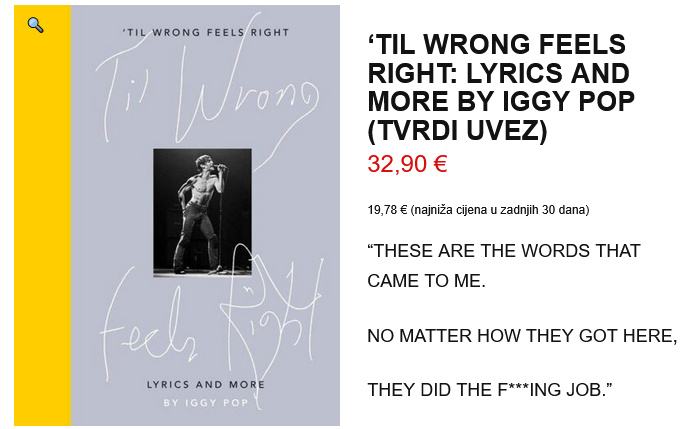 Hitno prodajemo IGGY POP knjigu TIL WRONG FEELS RIGHT, tvrdi uvez