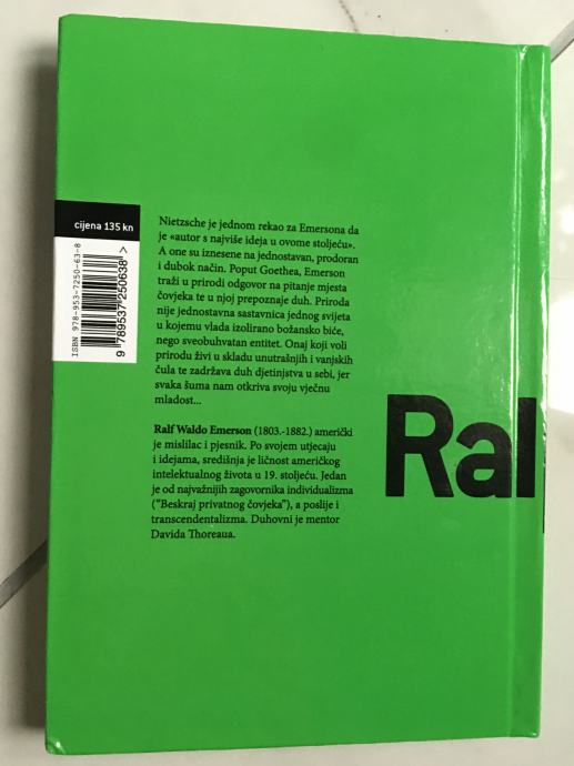 Nietzche je jednom rekao za Emersona da je 'autor s najviše ideja u ovome stoljeću'. A one su iznesene na jednostavan, prodoran i dubok način. Poput Goethea, Emerson traži u prirodi odgovor na pitanje mjesta čovjeka te u njoj prepoznaje duh.