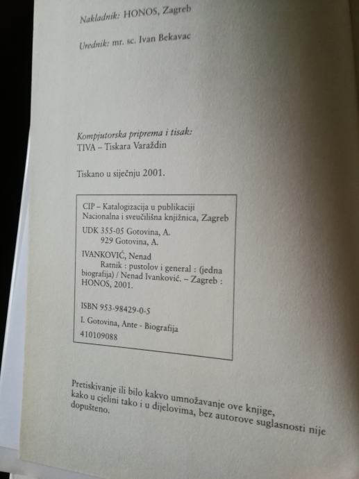 Biografija generala Gotovine,koju je 2001. objavio Nenad Ivanković. Tvrd uvez,247 stranica,knjiga kao nova.