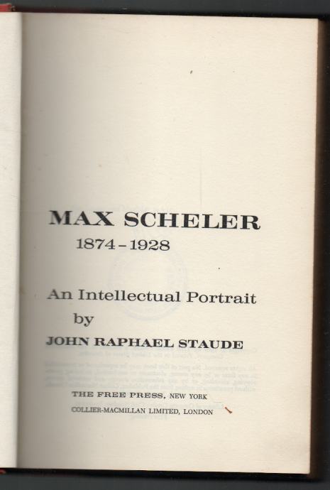 Staude, John Raphael - Max Scheler : an intellectual portrait
