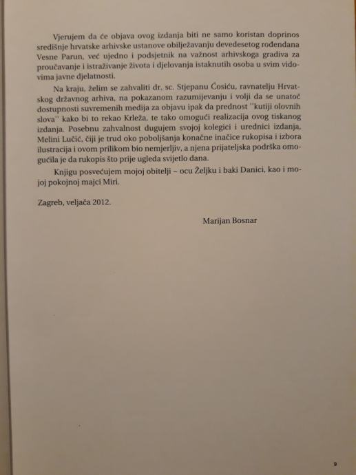 VESNA PARUN-Osobni arhivski fond(Analitički inventar) : Marijan Bosnar