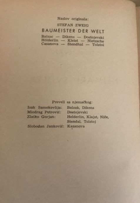 Zvajg ( Zweig ), Stefan : Neimari svijeta