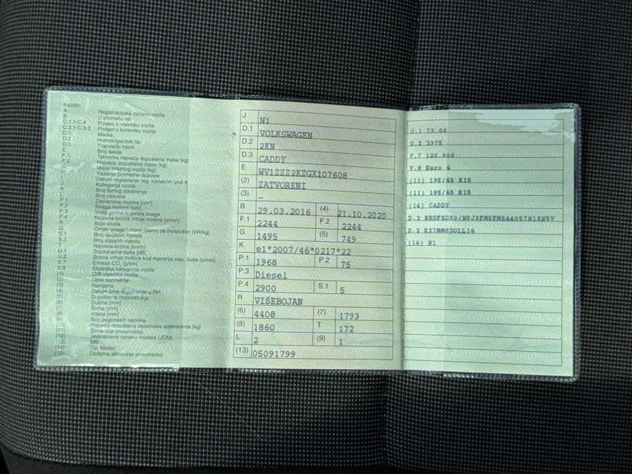VW CADDY 2.0TDI 75KW N1 5 SJEDALA I TOVARNI PROSTOR 100% ODBITAK PDV-a, 2016 god.