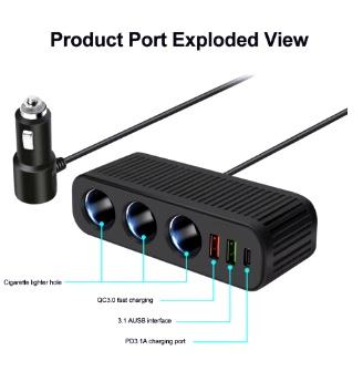 Naziv proizvoda: 3-smjerni automobilski upaljač za cigarete