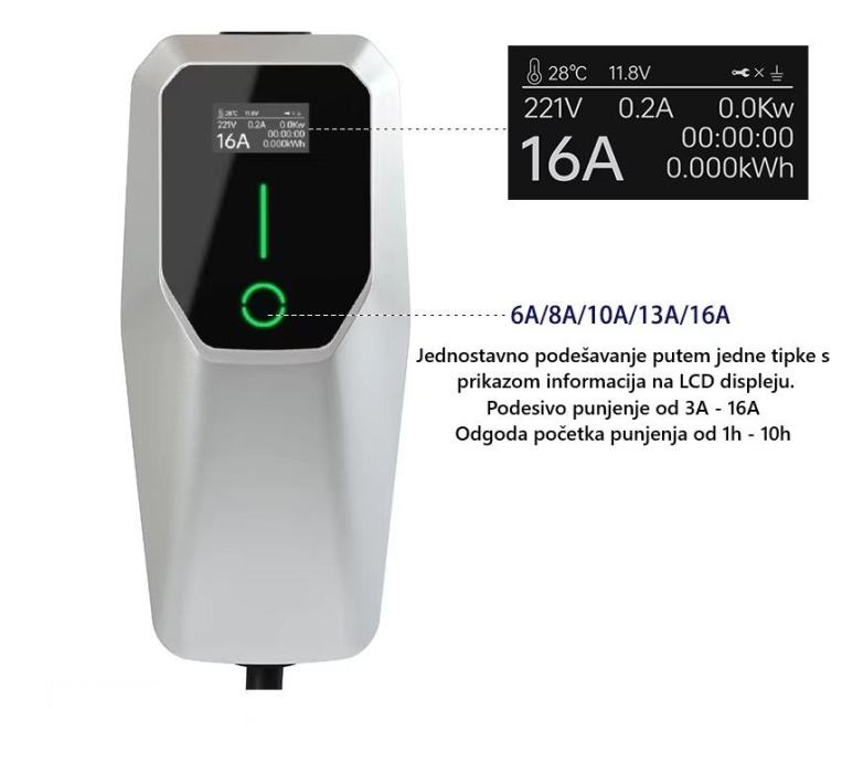 ➡️ Podesivo punjenje od 3A - 16A