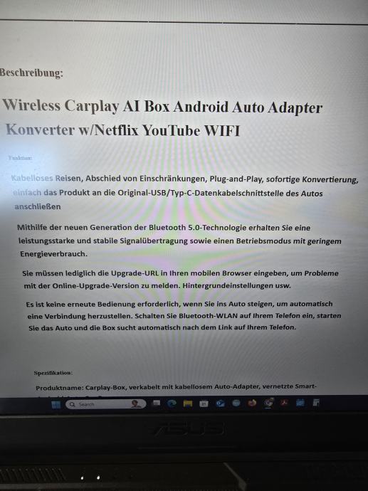 Ne paše na moj auto jel mi auto nema mogućnost video prijenosa usb-c samo audio.