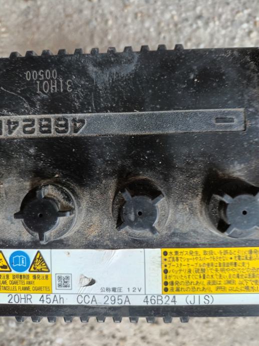 Prodajem korišteni ispravan akumulator 45Ah s adapterima na izvorima klema star 5 godina.