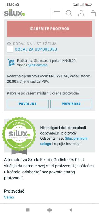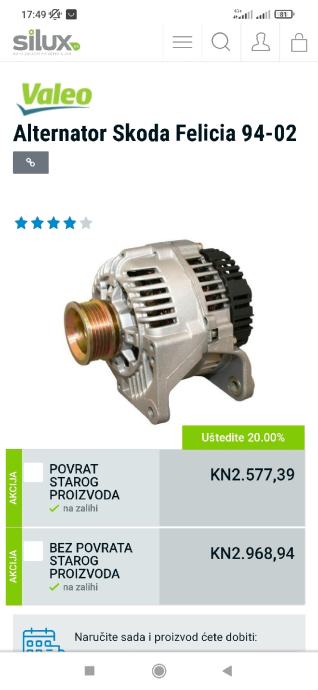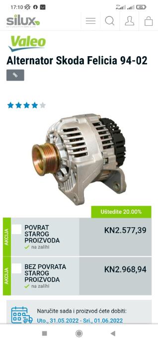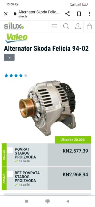 ALTERNATOR za Škodu Feliciu 1.3 MPI, za 95.€!
