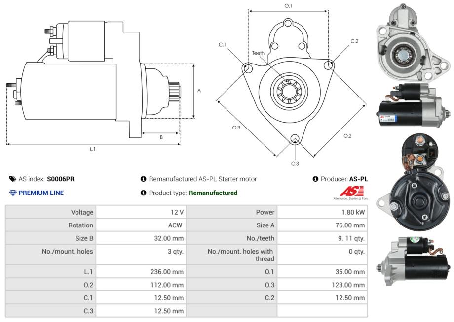 ⭐ AS-PL S0006PR | Elektropokretač Audi-VW 1.9/2.5 TDI 1.8KW ⭐