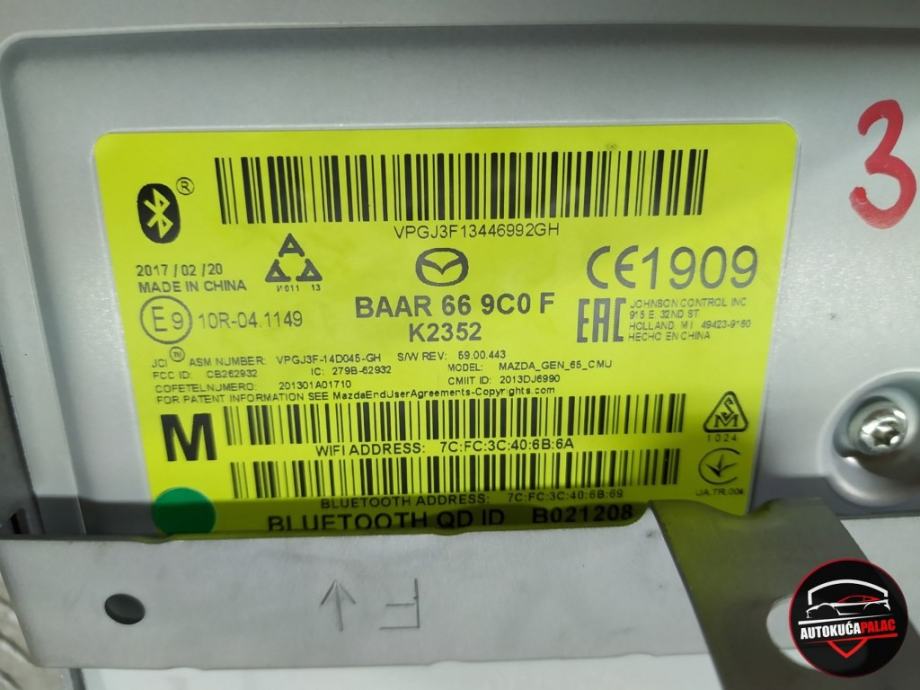 BLUETOOTH MODUL MAZDA 3 13-18 BAAR-66-9C0-F 397-66
