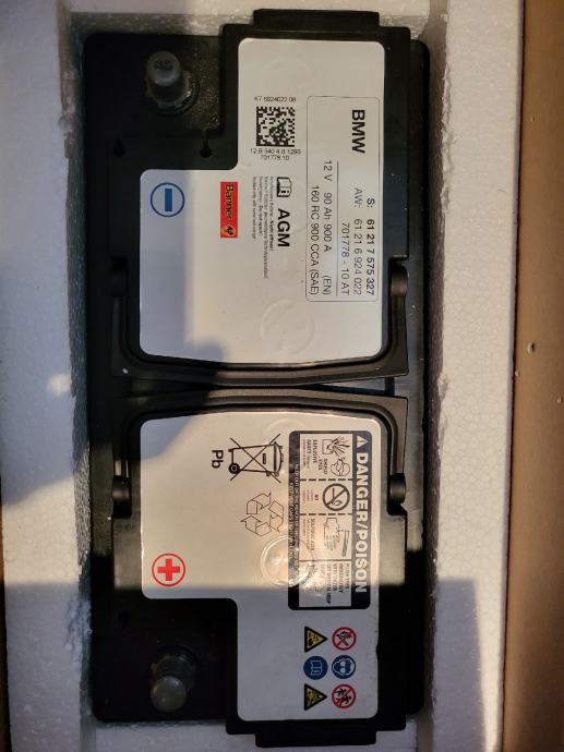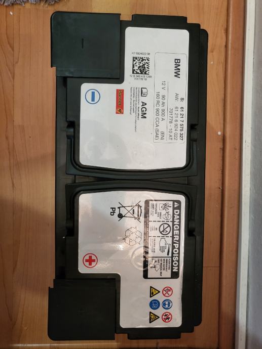 Prodajem rabljeni OEM original BMW AGM (START-STOP) akumulator 12V 90Ah 900A 160RC 900 CCA izvađen iz BMW vozila serije 3.oznaka modela F30.
