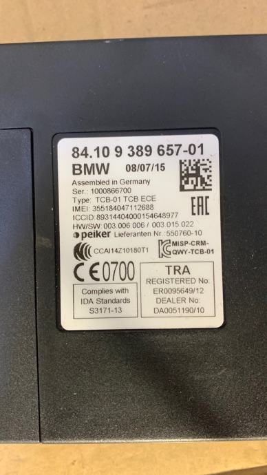 BMW F20 F30 F31 Bluetooth Teleservices GPS Telematics Module 9389657