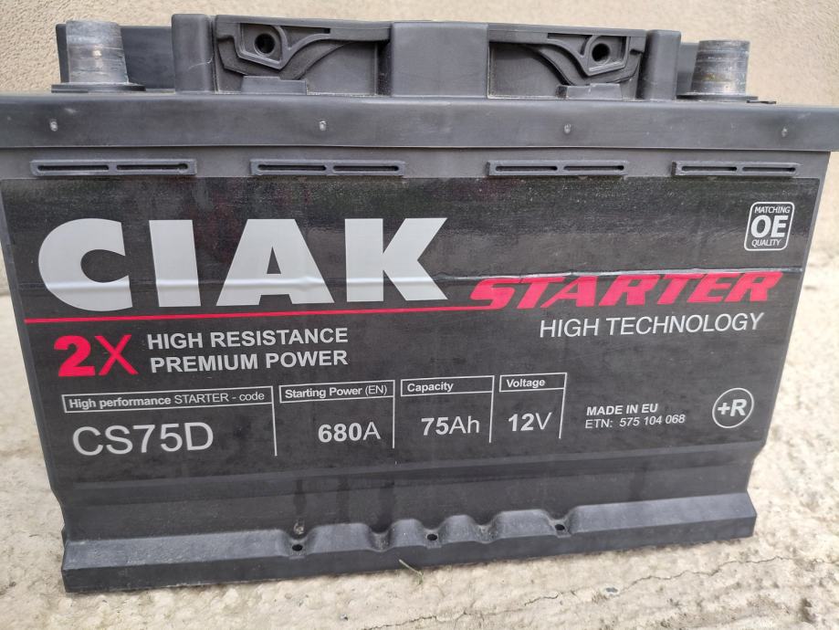 Prodajem CIAK akumulator 12, V 75 Ah, 680 A. Dimenzije: DxŠxV= 278x175x190.