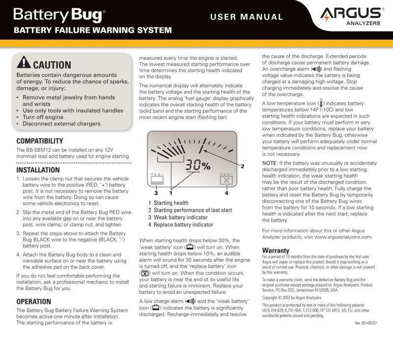DIGITALNI MONITOR AKUMULATORA ARGUS BATTERY BUG, TIP: BB-SBM12, SPLIT