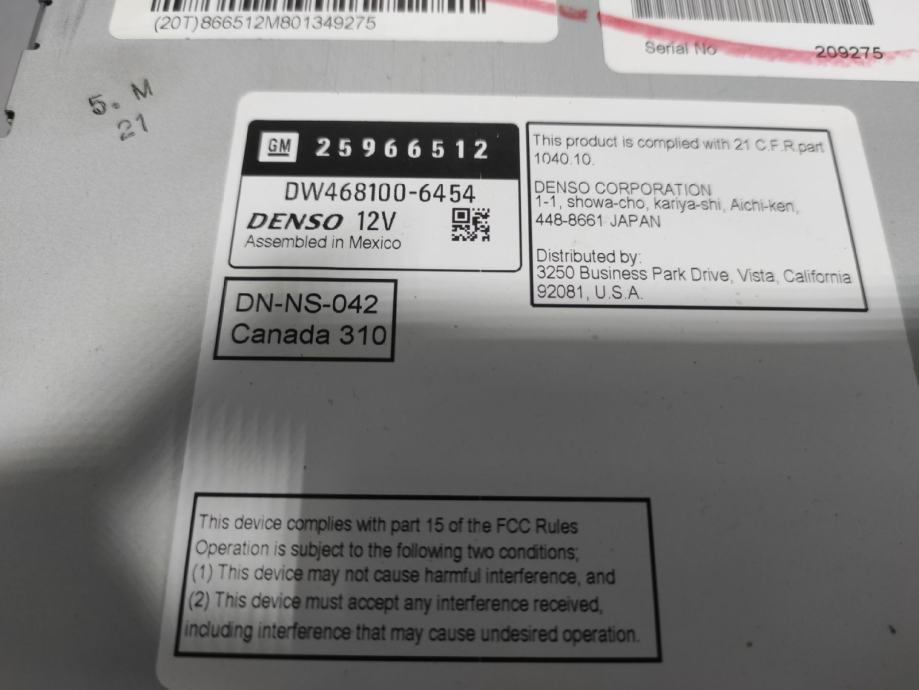 DIJELOVI RADIO I DISPLEJ CHEVROLET/DAEWOO SILVERADO > 07-14 25966512