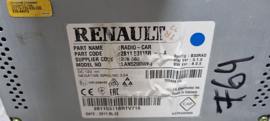 DIJELOVI RADIO I DISPLEJ DACIA DUSTER > 17- 281153118R