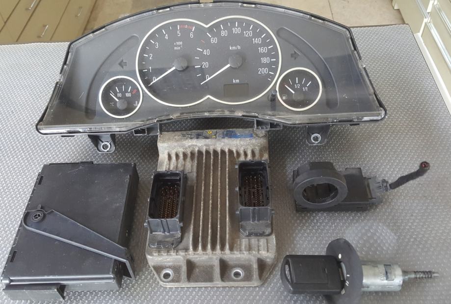 Komplet za Opel Merivu 1.7CDTI, motorni kompjutor, instrument ploča, brava, ključ, imobilizer i body modul sve od istog auta.