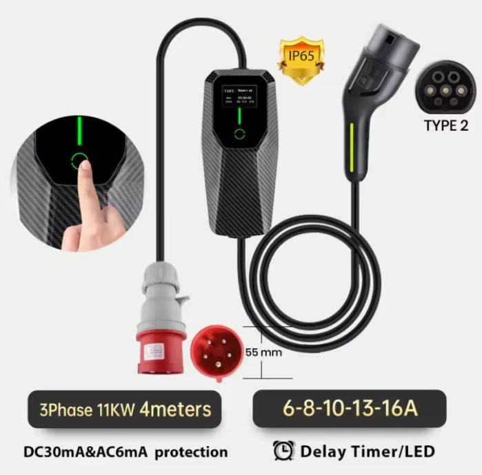 Kompaktni prijenosni punjač malih dimenzija za punjenje električnih vozila (EV) sa standardnim Type 2 priključkom (Mennekes IEC 62196-2). Za punjenje u garaži, na poslu, u vikendici ili na putu uz brzinu punjenja do 11kW trofazne 3F i 3.7kW obične 1F monofazne Schuko utičnice (uz dodatni adapter za Schuko). Struju punjenja moguće je smanjiti ako utičnica ili osigurač ne podržavaju struju 16A, pa se tako uvijek može puniti maksimalnom dostupnom snagom. Ovo je punjač za punjenje auta na bilo kojoj trofaznoj ili jednofaznoj utičnici (uz dodatni Schuko adapter), čak i kada postoji ograničenje snage kao npr. u kampovima - tada samo na punjaču smanjite struju punjenja da bude manje od ograničenja.