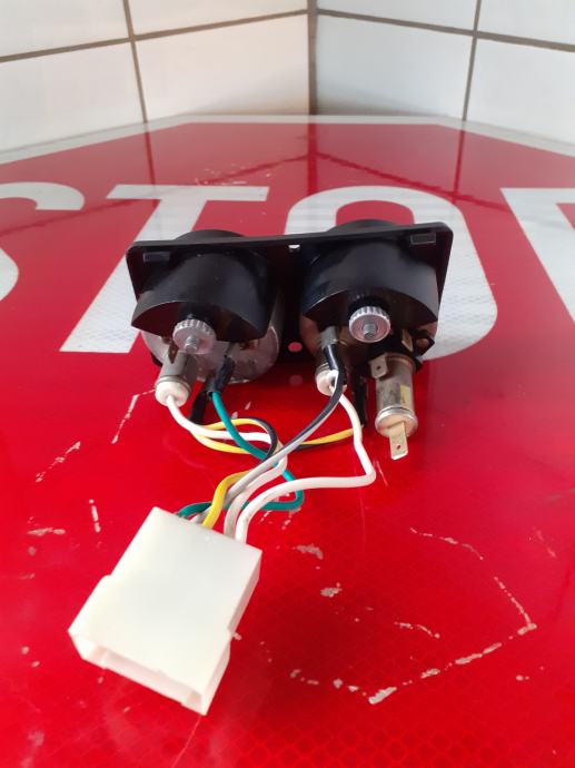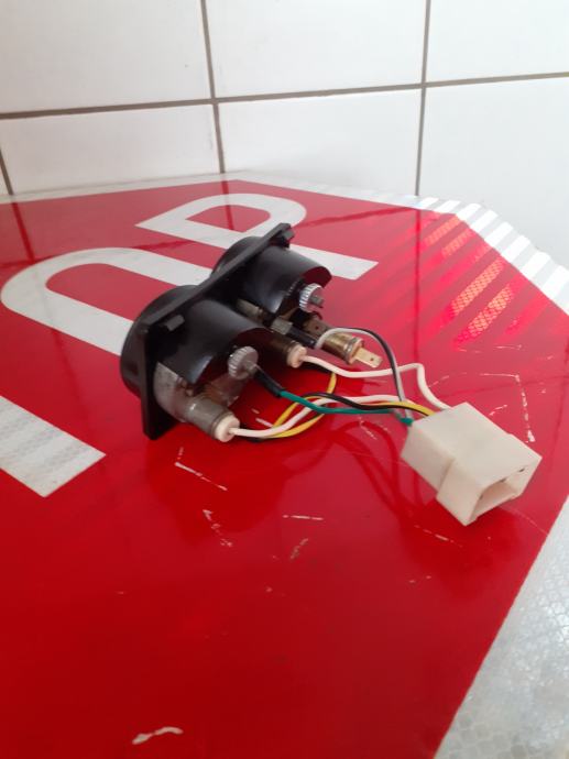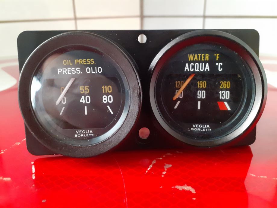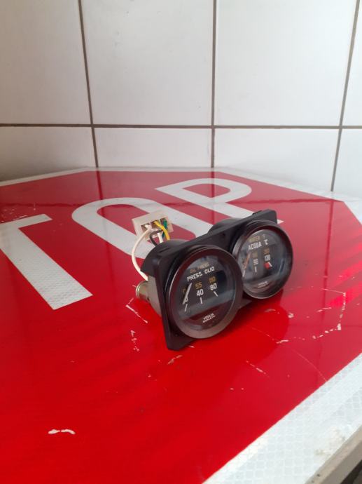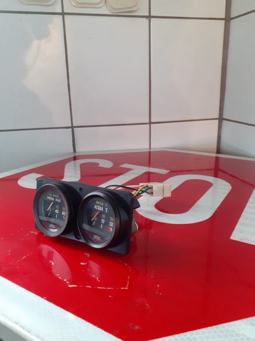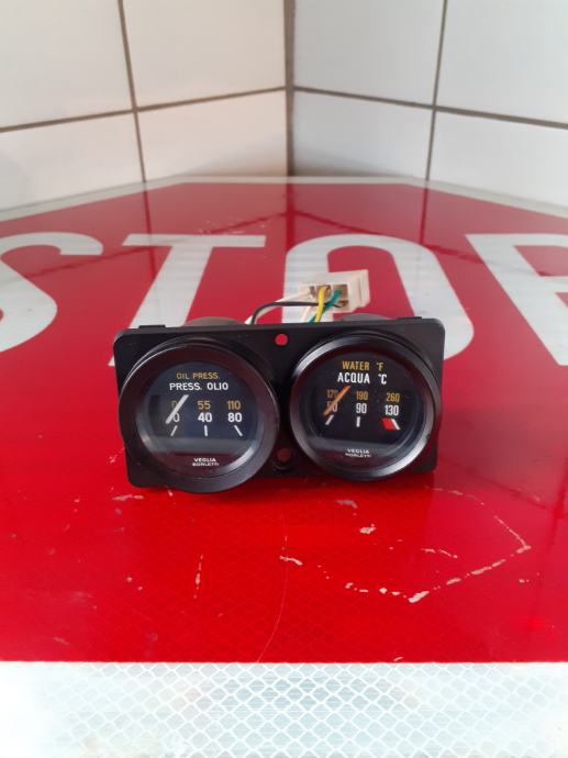 Fiat 128 rally / abarth veglia borletti pokazivaci temperature vode i ulja sa plastičnim okvirom nosačem i pratečom instalacijom i grlima za žarulje u dobrome rabljenom stanju .