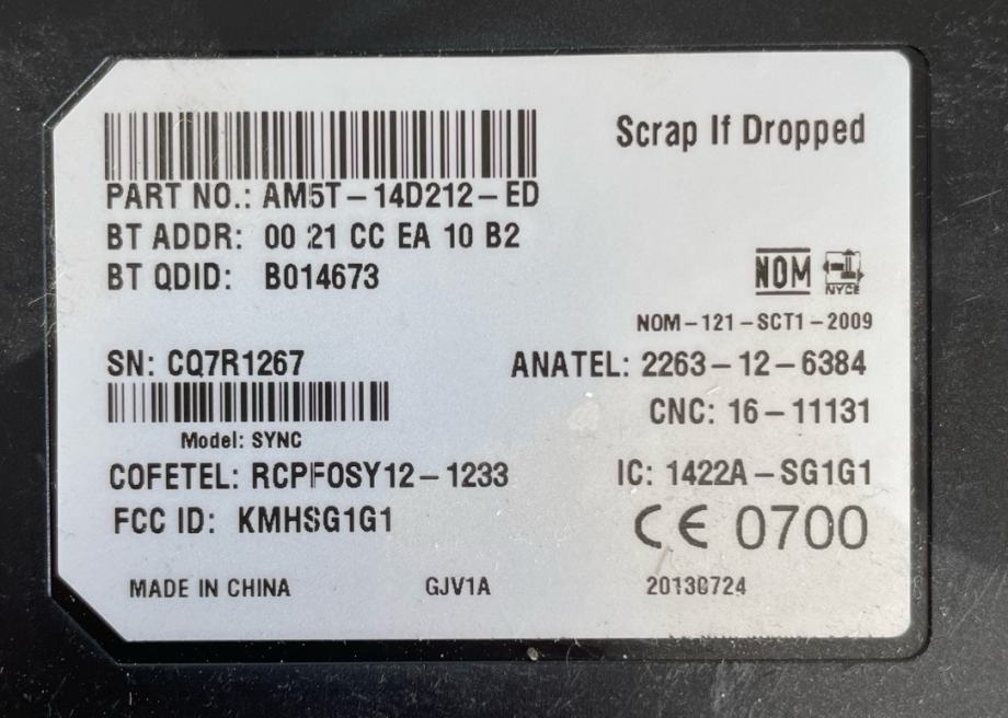 FORD C-MAX BLUETOOTH MODUL AM5T14D212ED CQ7R1267