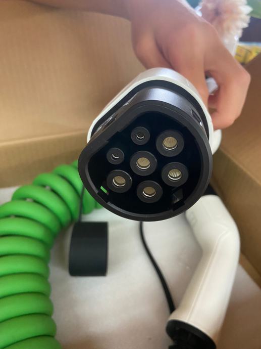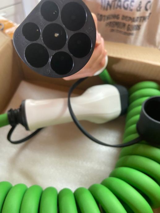 Prodajem spiralni rastezljivi kabel za punjenje električnih automobila na punionicama. Radi se o punjaču s Type 2 konektorima (muški za punionicu i ženski za auto). Ovaj kabel dolazi u najjačoj kombinaciji 32 ampera i 3 faze te puni do maksimalnih 22 kwh na punionici.