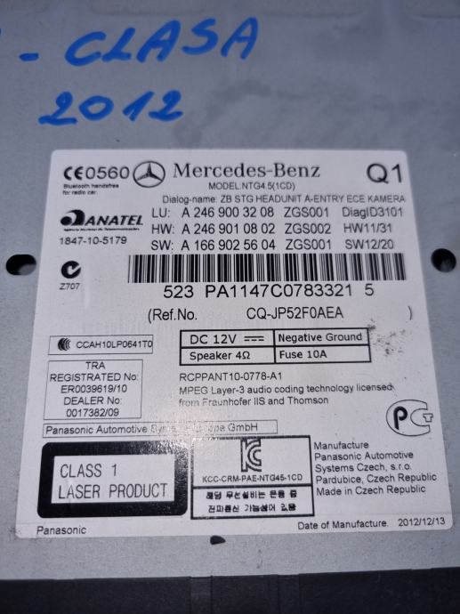 Auto CD radio s navigacijom za Mercedes B klasa 2012/Mogućnost dostave HP expres-om/Zvati od 08:00-16:00.