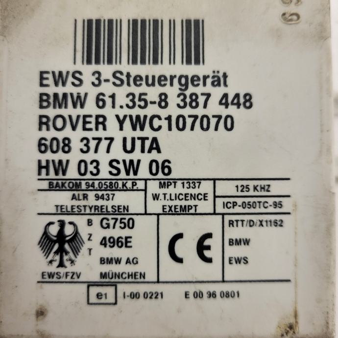 BMW E46 E39 ROVER 75 IMMOBILIZER ECU / YWC107070 / 61.35-8 387448 / 61