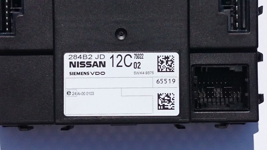 Nissan BCM, upravljačka komponenta u vozilu (računalo). Serijski broj dijela je 284B2JD12C. Navedeni BCM koristi se u modelima: Qashqai / Qashqai +2/ X-Trail, možda i u nekim drugim Nissan modelima. Provjerite serijski broj da li odgovara za Vaše vozilo.