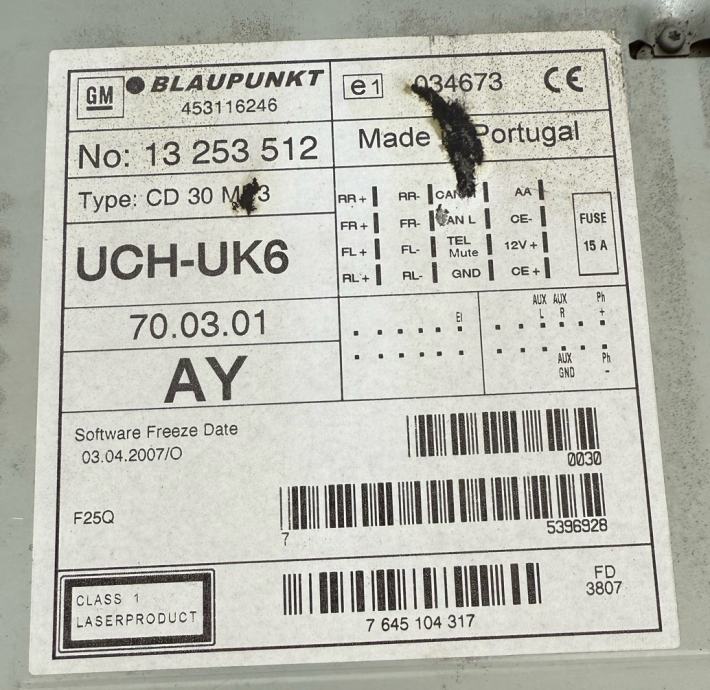 OPEL MERIVA A CD RADIO 13253512 CD30 MP3