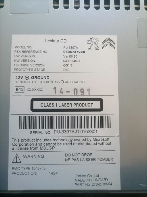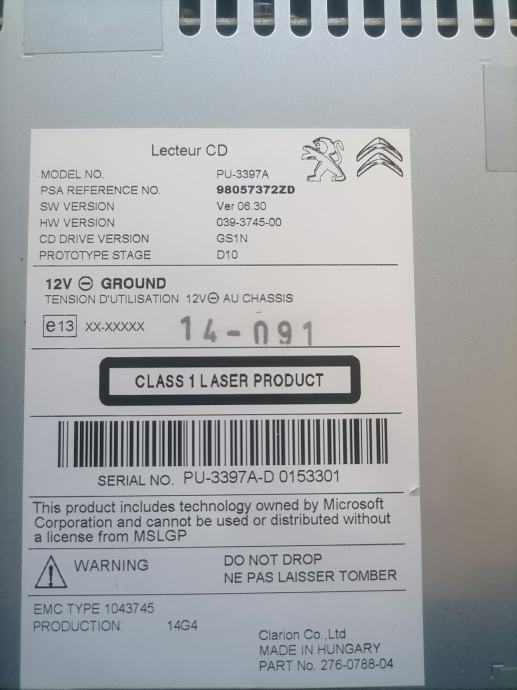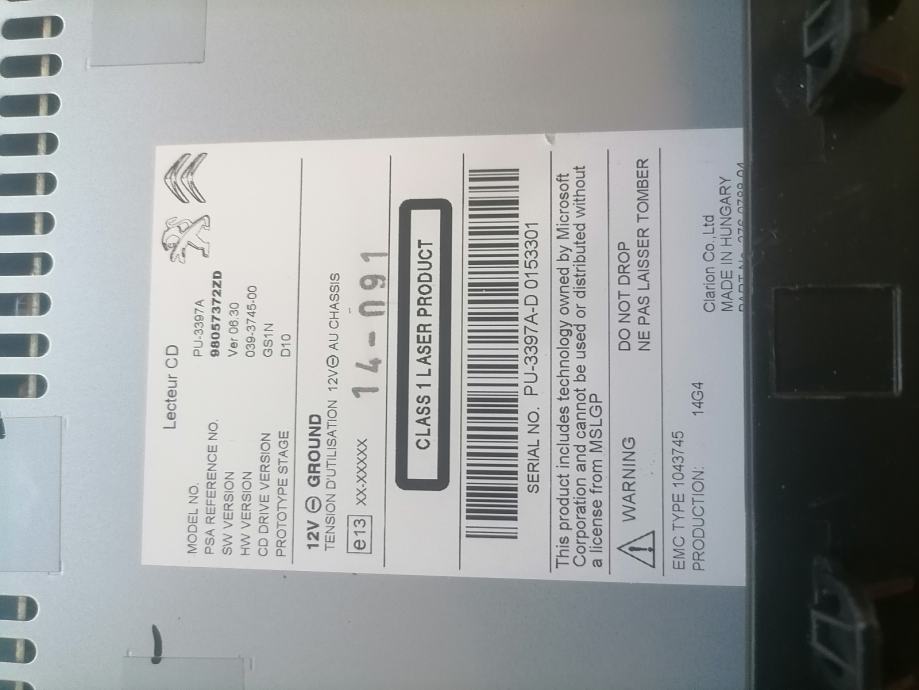 Peugeot Citroen cd player 2014 god iz Peugeota 2008 neispravan za dijelove,nece da uvuce i izbaci cd sve informacije na 098773780