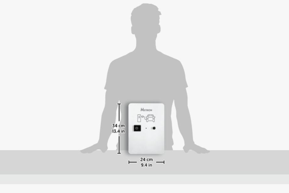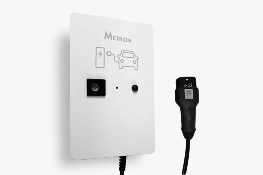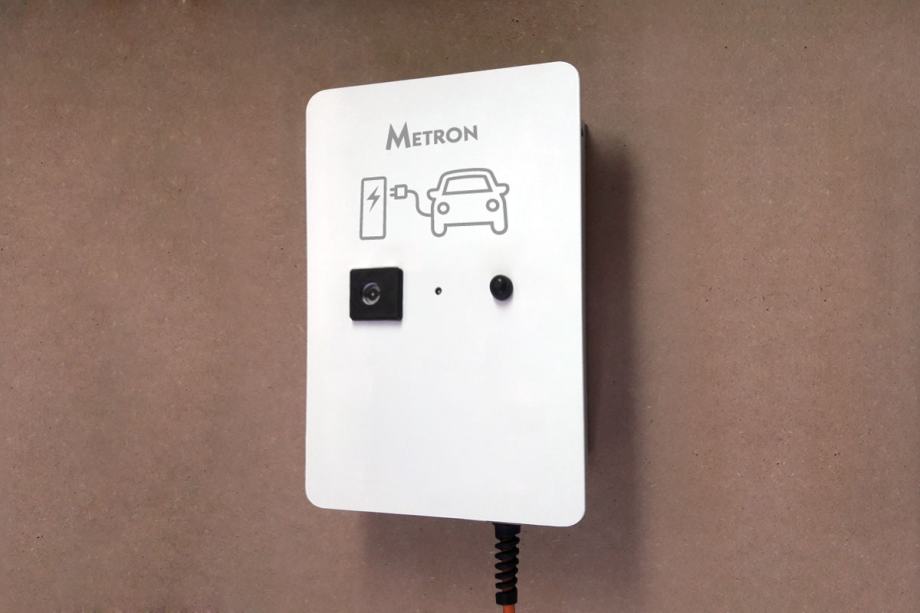 Stanica za punjenje za električna vozila s utičnicama za punjenje Tip 2. Podržava 3-fazno punjenje sa strujom do 3 x 32A (snaga punjenja do 22 kW). METRON