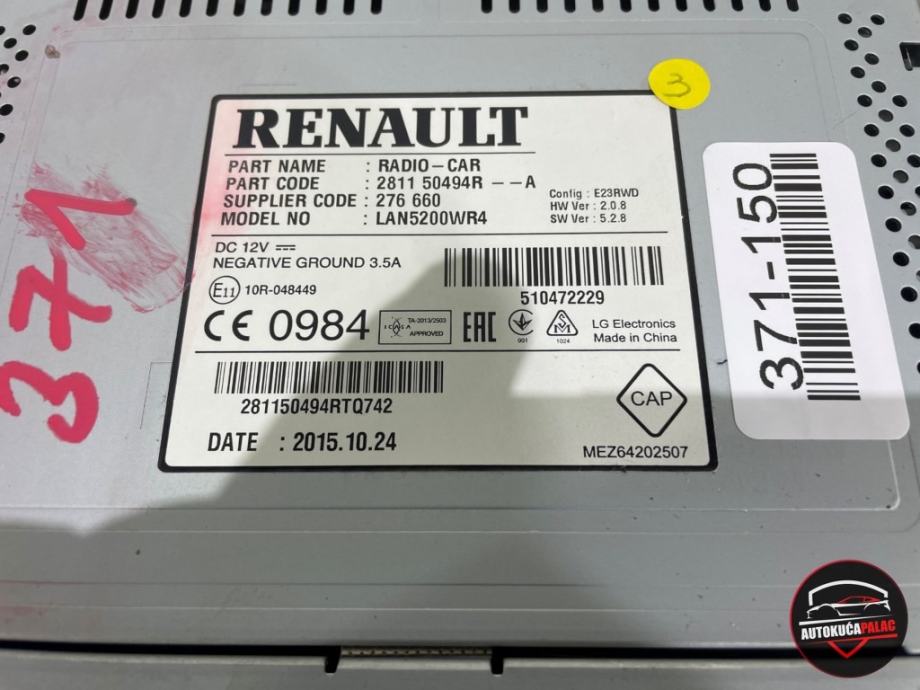 RADIO NAVI DVD CD RENAULT CAPTUR 13-19 281150494R 371-150