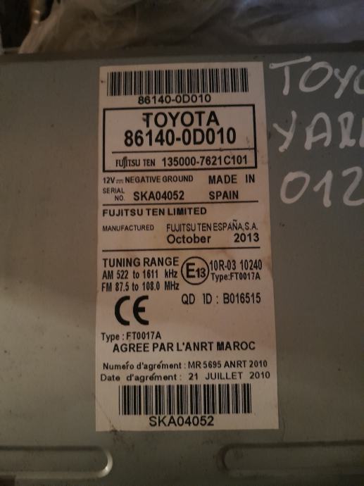 RADIO TOYOTA YARIS / NAVIGACIJA TOYOTA YARIS / 861400D010 / 10R0310240
