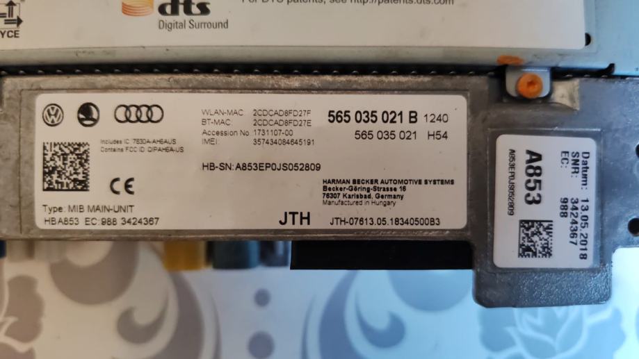ŠKODA SUPERB (2015-) navigacija-multimedija (MIB2 HARMAN)