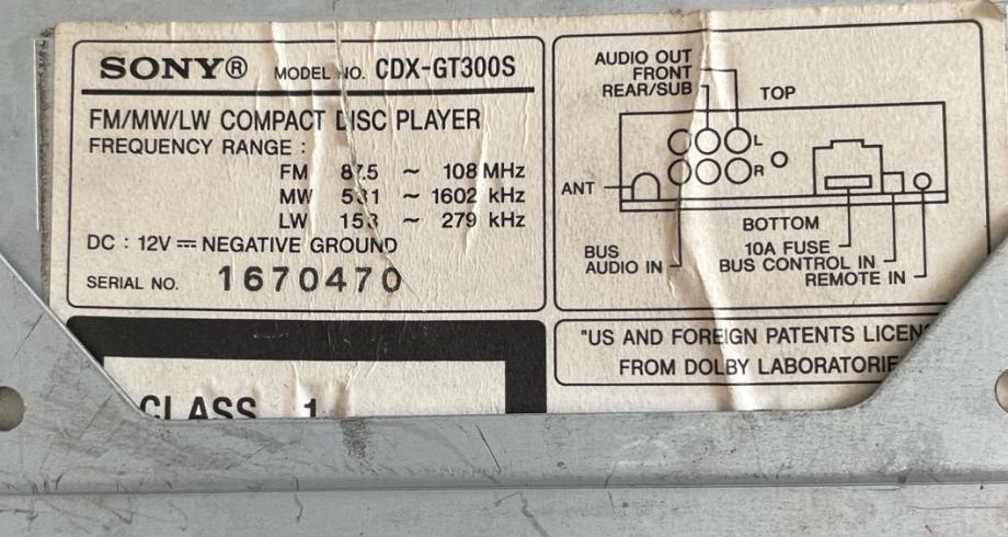 SONY AUTO RADIO 1670470 CDXGT300S