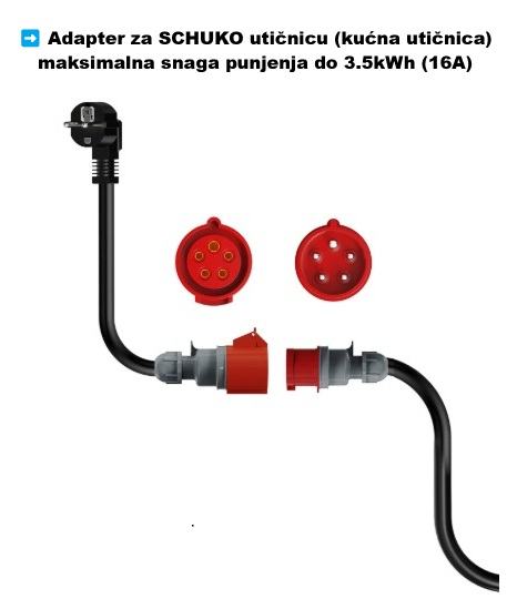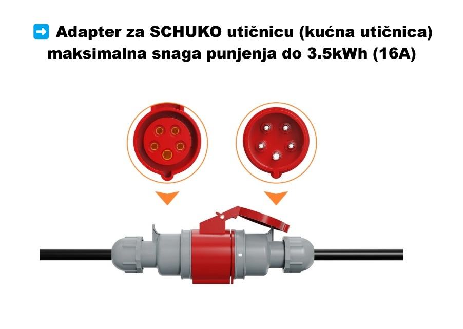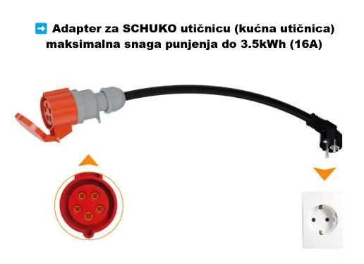 ➡ SCHUKO adapter za kućnu 220V utičnicu maksimalne snage punjenja do 3.5kWh (16A) - 20€