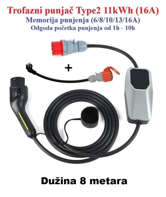 ➡️ Priključak (natikač) za trofaznu utičnicu 16A maksimalne snage punjenja do 11kWh.