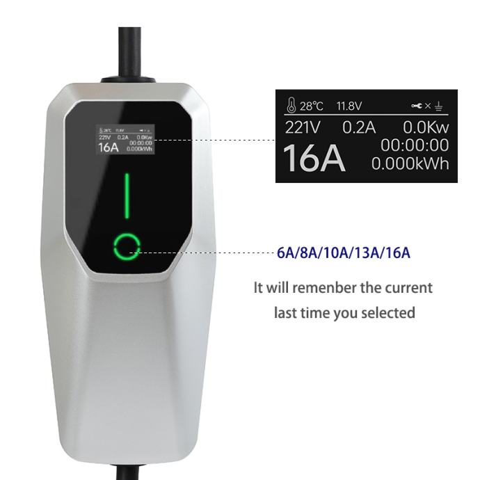 - Promjena struje punjenja: 6A/8A/10A/13A/16A (podesivo)