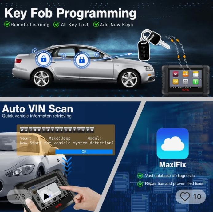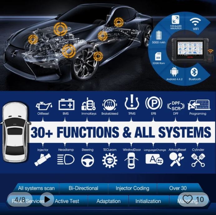 Uređaj je potpuno novi, legalan je, nije nikakva kopija. Može stalno biti spojen na internet preko wifi signala i tada možete odmah pretražiti dodatna pojašnjenja za neku grešku. Ima funkciju isčitavanja broja šasije(VIN) pa tako ne morate pretraživati model i tip automobila nego vam to dijagnostika odradi za vas. Ova dijagnostika osim što vrši isčitavanje grešaka može, programirati ključeve, dizne, injektore, akumulatore, senzore tlaka u gumama, otpustiti elektronsku ručnu, resetirati DPF, kalibrirati električne servo volane, klapne gasa, raditi adaptaciju automatske getribe, ugasiti upozoravajući zvuk za pojas...