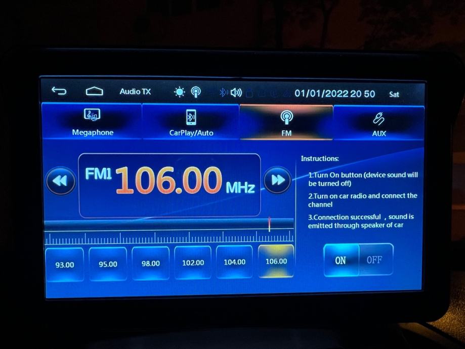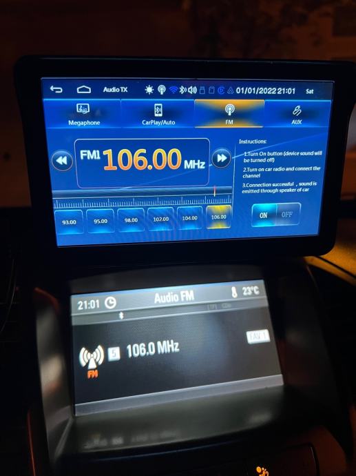 - Transmitovanje zvuka puta FM signala na radio od auta