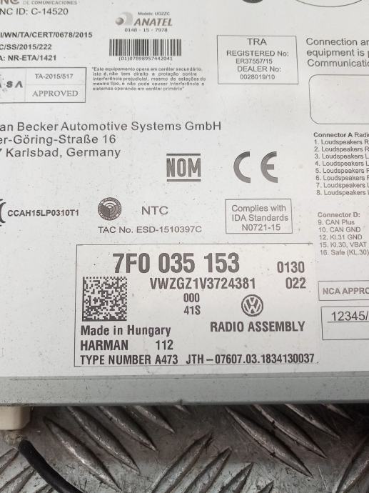 VW CADDY 4 T5 T6 AMOROK PASSAT AUTORADIO USB BLUETOOTH NAVY 7F0035153