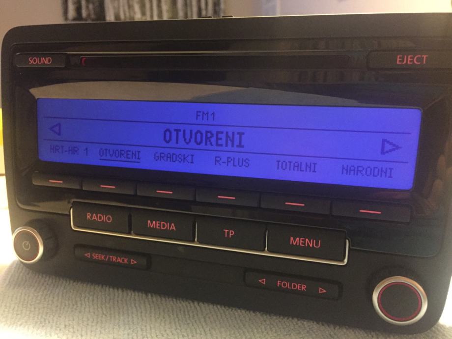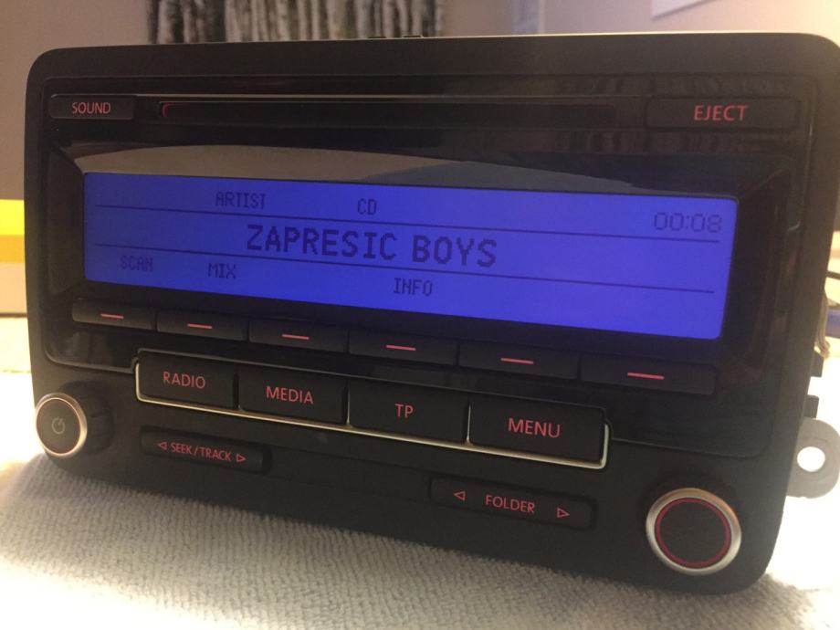 prodajem original VW RCD 310 CD MP3 radio, sa kodom, kao nov, bez ikakvih oštećenja i ogrebotina, prikaz stanja climatronica, parking senzora, bio u autu 2 mjeseca. Odgovara na golf 5, 6, passat, caddy, touran, jetta....