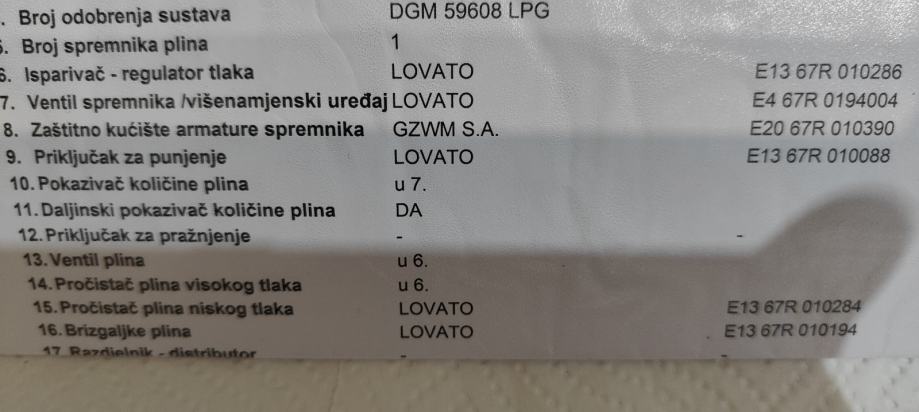 Lovato - komplet plinske instalacije, rabljeno