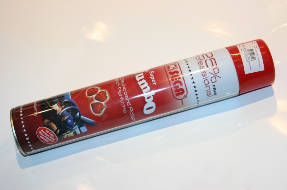 Sega super jumbo sa mirisom jagode , te silikonskim dodatkom za poliranje i čišćenje vinila, plastike , kože , drva , plastičnih branika , gumenih dijelova .