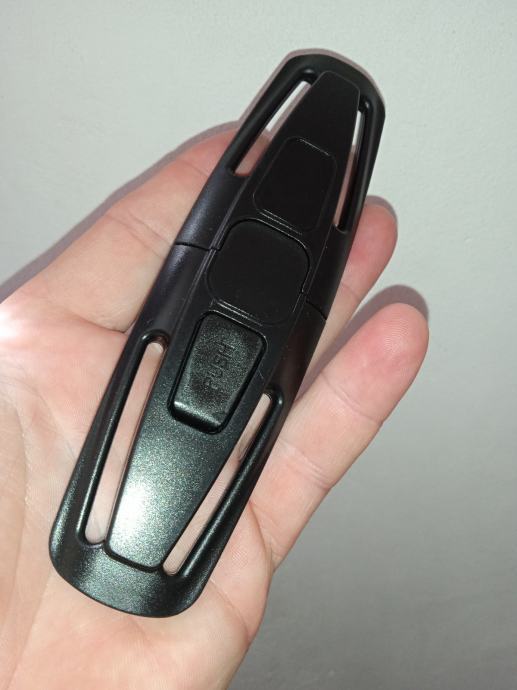 Prodajem plastični dvodjelni držač pojaseva auto sjedalice.