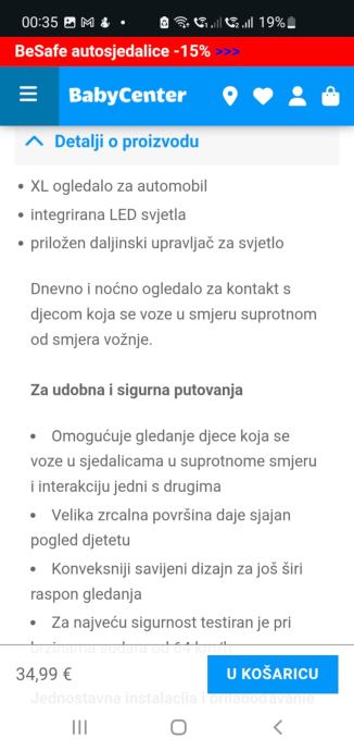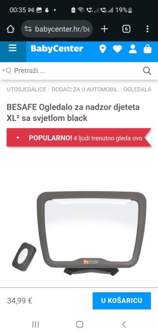 Prodajem BeSafe XL ogledalo s integriranim svjetlom koje se pali pomoću daljinskog upravljača. Svjetlo radi na 3 AA baterije.