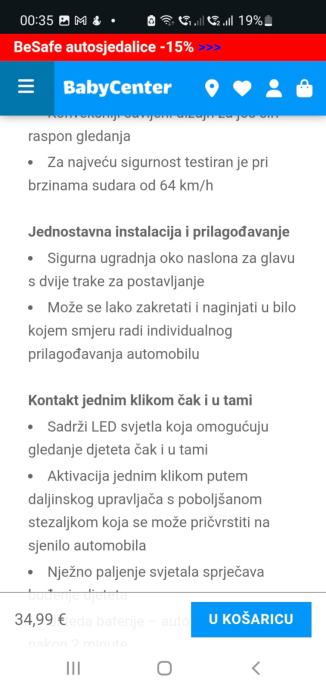 Postavlja se remenčićima na naslon za glavu od stražnjeg sjedala u autu i može se rotirati da se namjesti za optimalni pregled.