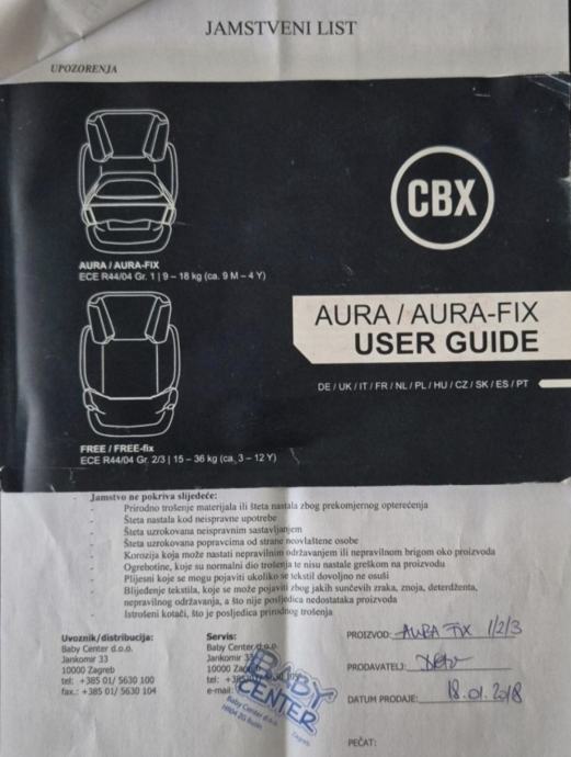 Autosjedalica Cybex, 9-36 kg, u vrlo dobrom stanju. Nikad nije sudjelovala u sudaru. Navlake su perive.